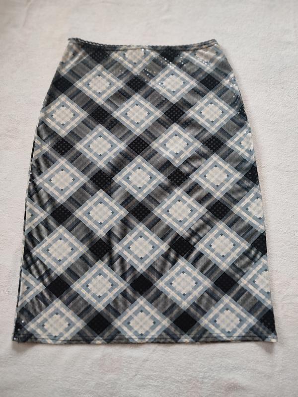 Юбка красиво сверкает, покрыта мелкими пайетками, чуточку тянется
