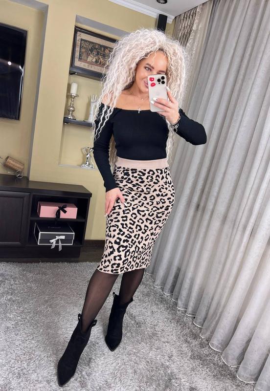 Юбка миди вязаная лео леопард