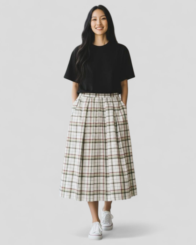 Клетчатая юбка в складки с карманами и высокой талией C&A р. XS/S - состав: 70% полиэстер, 30% вискоза Легкая, без подкладки (не светится) Складки только спереди, сзади ровная. Сезон: весна/лето В идеальном состоянии! Замеры: - длина 71 см - ПОТ 36 см - ПОБ 55/57 см
