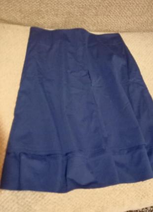 Юбка трапеция. Спереди двойная. Сзади молния. Ширина изделия в талии 43 см Ткань плотная, похожа на тонкий джинс. Состояние отличное. без нюансов.