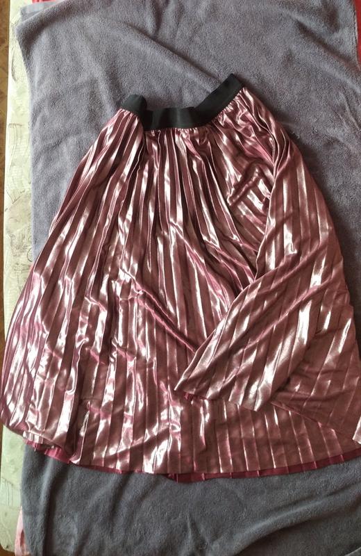 Юбка плиссе с розово-лиловым металлическим отливом , имеет подкладку. Без дефектов.