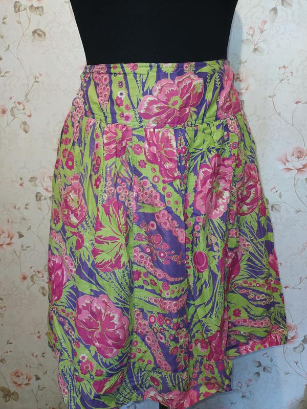 Легкая мягкая юбка M&S с фиолетовой подкладкой. Материал - хлопок. Размер 10 ПОТ 42, ПОБ 51, длина 61