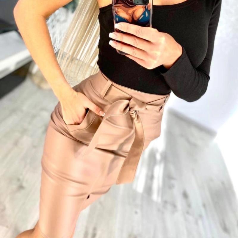 Спідниця Нова ціна 495 грн В наявності у кількості Кольори : чорний , рудий, кремова Довжина 65 см Матеріал еко шкіра Тягнеться , ідеальна посадка, робочі кишені Розміри: 42,44,46,48,50,52,54,56 На моделі розмір 46- стегна 94 Рекомендовані об'єми стегон : 88,92,96,100,104,108,112,116 Максимальна талія кожного розміру : 62,66,70,74,78,82,84,88см код1955(ази)