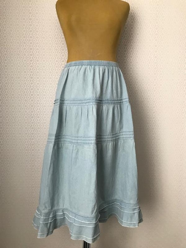 Джинсовая ярусная юбка светло-светло голубого цвета. Джинсовая ткань средней плотности. Пояс - резинка, соответственно отлично подойдёт на несколько размеров. Чешский бренд, сделана в Чехии. Показала посадку на манекенах двух размеров L и 3XL (параметры манекенов в объявлении ниже), считаю что в обоих случаях выглядит достойно ! ) Замеры в не растянутом виде, см: ПОТ (по поясу) 38, тянется дог 60, ПОБ 70+, длина 76. Объёмы желтого манекена, см : плечи 40, ОГ 97, ОТ 77, ОБ 100 Объёмы черного манекена, см: плечи 43, ОГ 111, ОТ 90, ОБ 114 Отправляю Новой почтой либо наложенным платежом (при условии оплаты доставки в оба конца), либо по предоплате на карту Приват, Укрпочтой по предоплате, JUSTIN по предоплате Продаю много фирменных вещей Airfield, Strenesse, Gerry Weber, Steilmann, Brax, Bonita, Basler, Frank Walder, Apanage, Olsen, Ulla Popken, Gardeur, Monari, Rabe, Guess, Hauber, Marks&Spencer, Concept K. Много новых вещей (с этикеткой) - можно на подарок. Смотрите другие мои объявления. Спасибо, что заглянули :-)