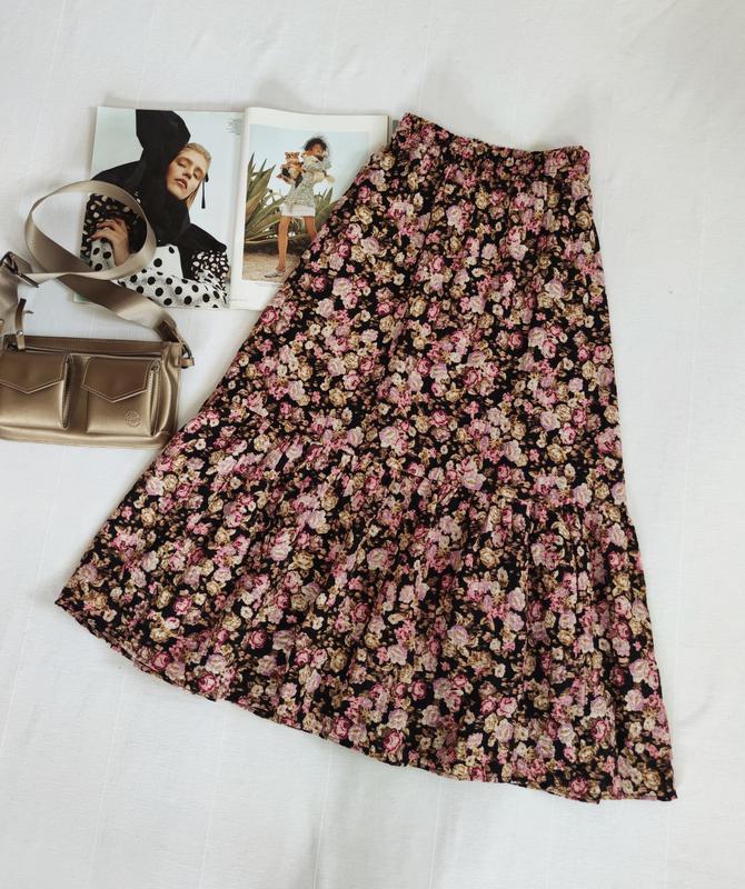 🌿спідниця міді з квітковим принтом H&M, тканина з підкладкою, талія на резинці Розмір:S Заміри: ширина поясу 33 см, довжина 78 см