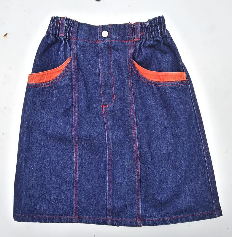 юбка джинсовая, синего цвета, красные вставки. состояние идеальное. молния рабочая, кнопка на месте. на поясе есть резинка. длина 46см, полуобхват бёдер 43см, по поясу в растянутом состоянии 89 см. Остались вопросы пишите-отвечу. оплата на карту
