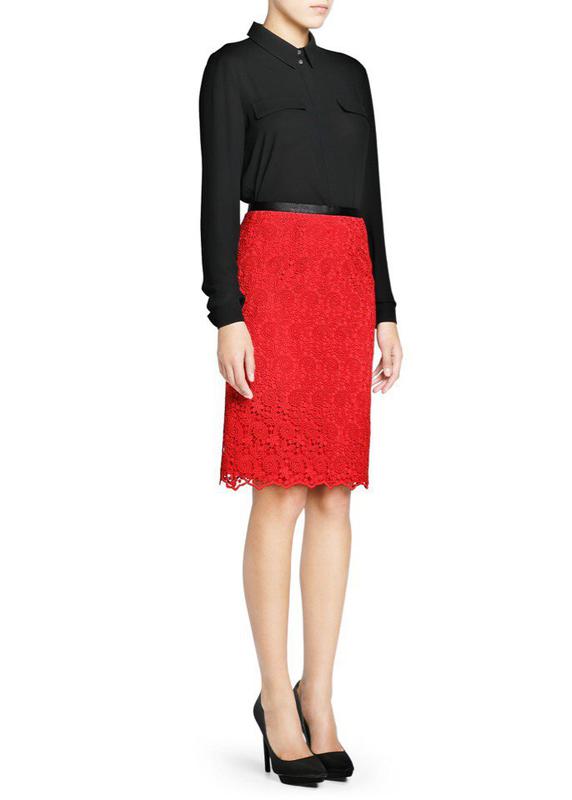 Юбка MANGO из гипюра с контрастным поясом. Сзади небольшая распорка. Насыщенный цвет хорошо подчеркнет ваш образ. Оригинал, непревзойденного качества. Замеры: длина 58см В бёдрах 40см Ссылка на официальный сайт с этим товаром https://shop.mango.com/us-es/mujer/faldas-midi/falda-guipur-cintura-contraste_13029024.html?c=03&n=1&s=prendas