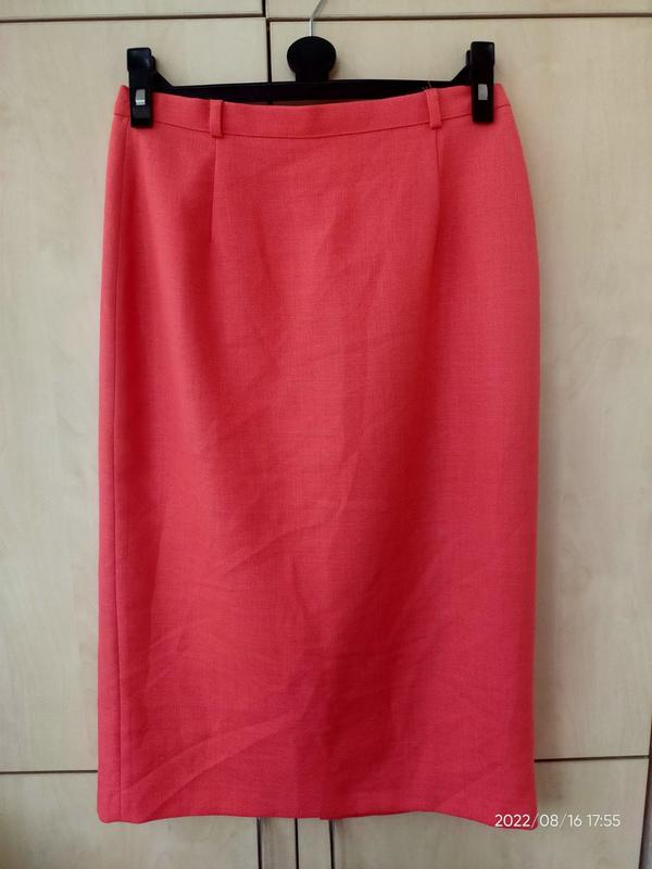 Юбка миди коралл р-р М, замеры: полуобхват талии 36, полуобхват бедер 49, длина 71. В отличном состоянии, без дефектов. На подкладе. Состав ткани 50% модал (разновидность вискозы), 50 % полиэстер.