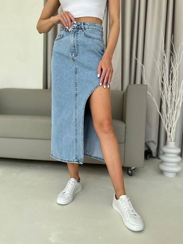 В наявності!!! #Юбка с вырезом на ножке Размеры : 34.36.38.40. Турция 100% джинс котон
