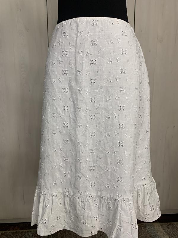 Юбка в нежную вышивку ришелье, есть подкладка! Верх из коттона, льна и немного полиэстера! Размер 12 По поясу 37, бедра 51, жена 63 см