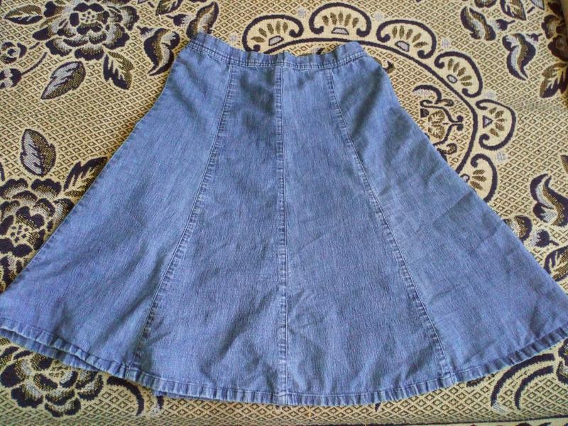 Красивая джинсовая номерная спледница в iдеальном состоянии. Пошил трапеция. Довжина 66 см, ПОТ 36 см + резинка на поясi, ПОБ 50 см. Тканина не щiльна, на сезон весна - лiто.