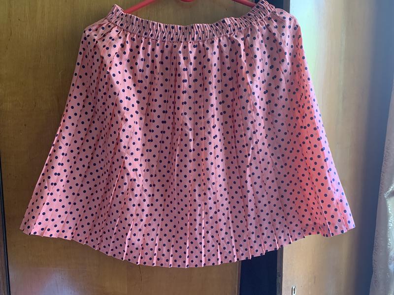 Класна яскрава легенька спідниця в горошок, пояс на резинці. Колір ближче до фото 2 (там де фото з біркою). Шикарно виглядає на тілі, в ідеальному стані.