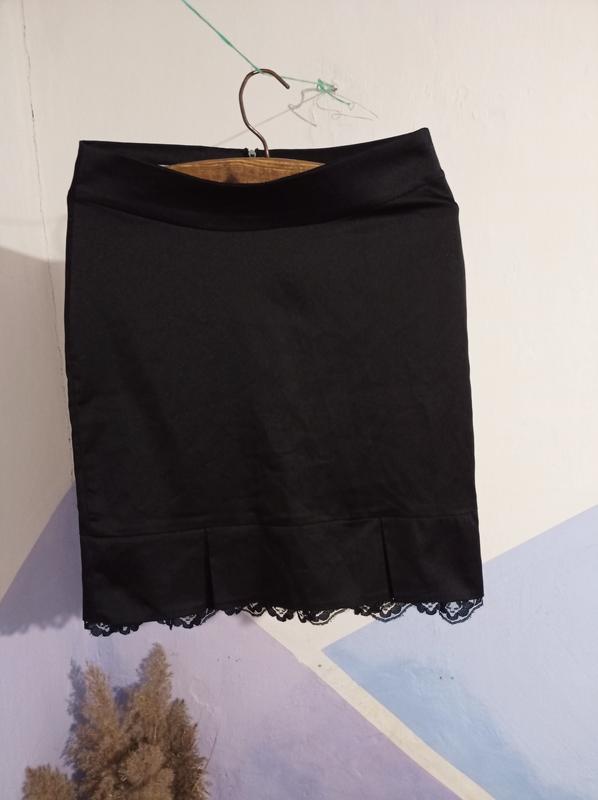 юбка черная карандаш, атласная. Размер М длина 50 п.б в поясе 39 п.б бедра 45