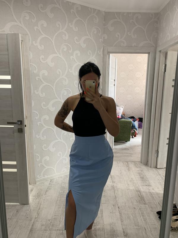 Новая юбка завышенная посадка, с разрезом по ножке Полу обхват талии 40 максимум 41 Бедра полу обхват 52 тянуться до 59 Длина 95