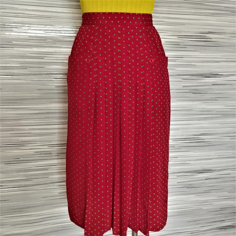 Такая файная,симпатичная меди юбочка в горох винтаж от NEXT качественный пошив в деталях основной цвет – красный,зеленый горох,боковые накладные карманчики, декорированные пуговицами, складки по середине подола, размер S M (по сравнению с бирцией больше, но винтажные вещи маломерят) длина 76 см ПОТ 34 см - 36 см ПОБ 56 см, в стик.стани на спинке молния, разрез декоративный 100% поле сатин, средней плотности, бодрящая ткань,практично не требует глажки цвета насыщенные, сохраненные загалом ІДЕАЛЬНОГО СТАНУ,абсолютно