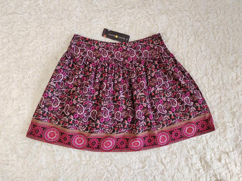 Красивая юбка французского бренда Cache Cache. Разноцветная с узорами, внизу пайетки. С подъюбником. Ткань тонкая и легкая. Размер указан 42, может быть на L/XL. Снимк фото. Классно садится и отлично смотрится! Материал: 100% хлопок. Подъюбник 100% хлопок. Производитель Индия. Замеры (р.42): - полъем пояс: 42см - полъем бедра: 80см (за счет складок) - длина (по спине): 50см - ширина по низу: широк. ВАЖЛИВО! Поравнивайте замеры со своими вещами, в которых Вам удобно! Некоторые вещи могут увеличить или поменьше! Отправка по Новой почте (оплата на карту или накладным платам (при минимальной предоплате). Укрпоштой при полной оплате. Смотрите также мое другое объявления. Чтобы не потерять, добавьте в «обранное». Подписывайтесь на постоянное обновление и добавление новых позиций.