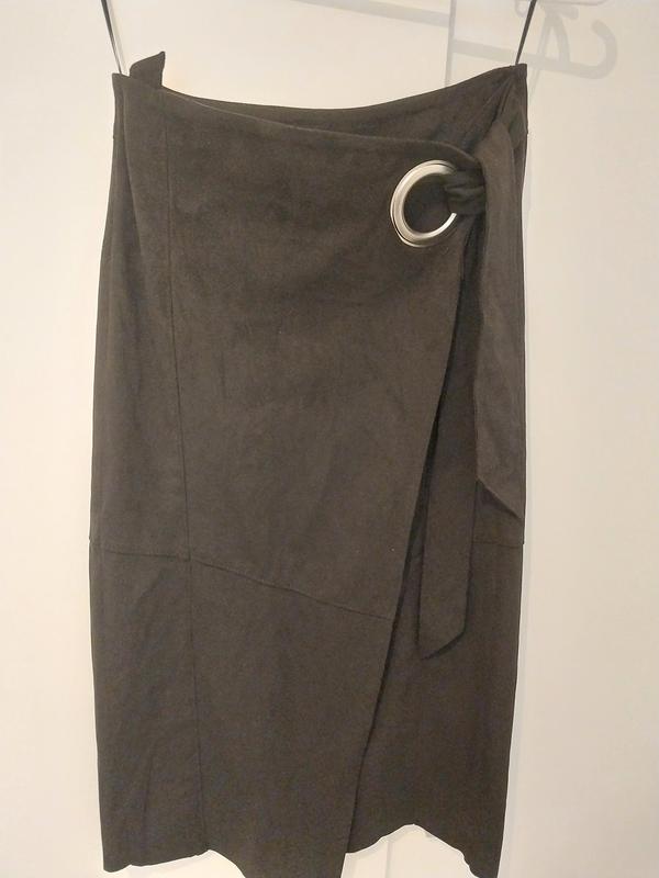 юбка,новая,размер 36,штучная замша,цвет черный,юбка на запах