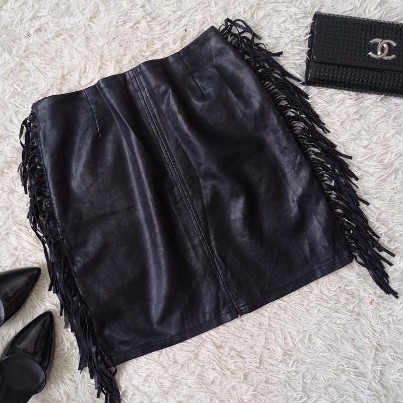 Юбка с экокожи,с бахромой по бокам, сзади на замок В идеальном состоянии, безложений Размер указанный 10