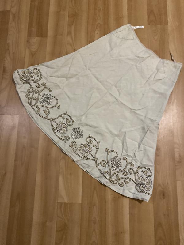 Талія 37 см довжина 60см стегна 50см можно більше , бо так пошита що буде і на більші стегна . По низу гарна акуратна вишивка схожа на ,,гладь,, тканина верх льон ,продаж від 100 гривень
