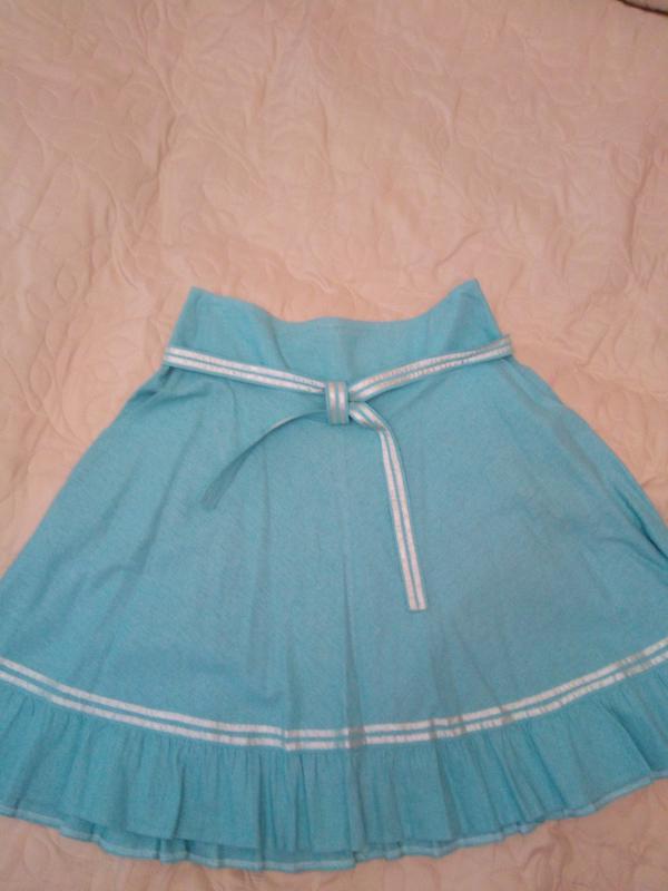 Юдка голубого цвета размер 48, очень прчтная к телу .Талия 41 см,длина длина 58 см,с карманами.