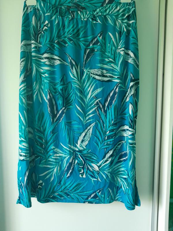 ткань по типу масло,гарно тянется, как новая,пояс на резинке длина 82 пот 54-80 поб 80-100 по низу 77-107 разрез 28