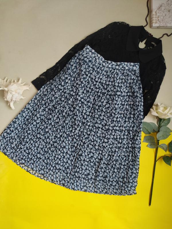 юбка в цветочный принт с плисеровкой на подкладке, застежка молния, подклад эластичный, тянется,верх шелковый р. 10/38 М, подходит на L Длина 69 ПИТ 36 ПОБ 58 Стан идеален, почти новая