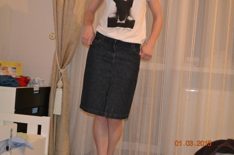 Продам спідницю,стан нової речі,джинс щільний без потертостей.На мій зріст 173см довжина до колін.Довжина 53,в поясі 39,в стегнах 48.