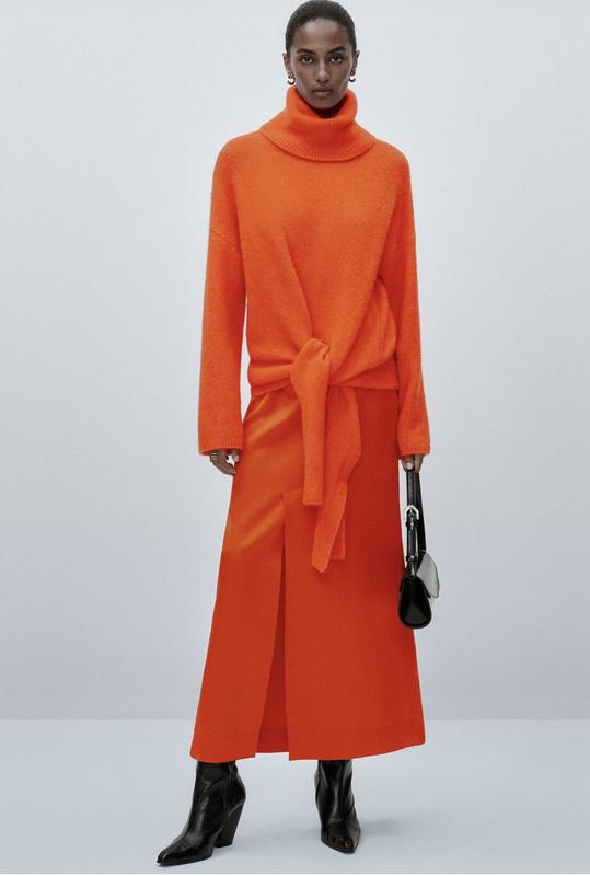 Новая миди юбка Massimo Dutti studio Насыщенный мандариновый цвет Тяжелая красивая ткань плотный Сатин Размер 36