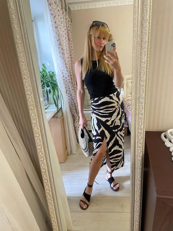 Юбка лён принт зебра, фасон на запах 36р с-ка стиль zara