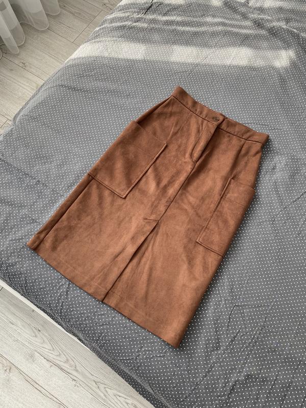 Дуже гарна базова юбка міді. На доторк як бархатна . Довжина 64 см, пояс 63 . Стан ідеал