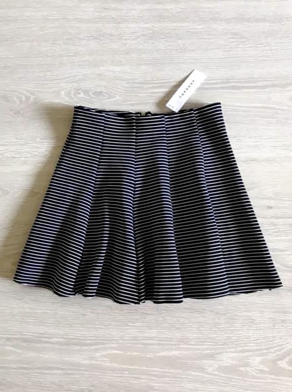 Нова спідниця Topshop. Розмір 8/36. Довжина 40 см. Напів обхват талії 33-39 см.Напів обхват стегон 50 тягнеться до 66 см. Поліестер/еластан.