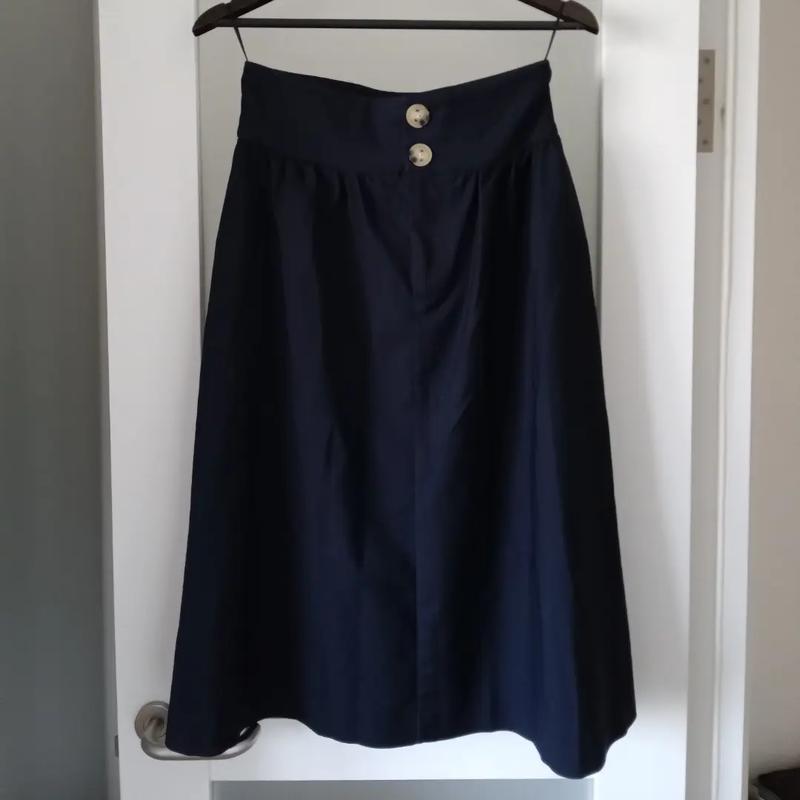 Темно-синяя юбка с карманами, в хорошем состоянии, имеет минимальные затяжки на кармане (фото 4)