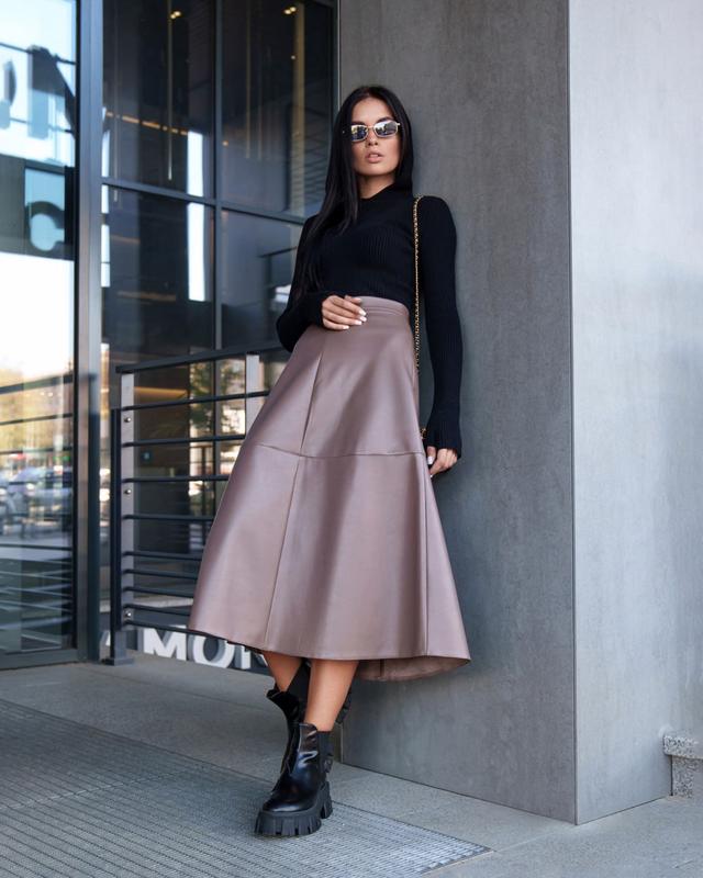 хл💙Юбка Арна Ткань: экокожа на замше Состав: 94% полиэстер 6% другие волокна, Цвет: черный, мокко Размер: S, M, L, XL, Параметры модели на фото: Зріст: 170 см, ОГ: 86 см, ОТ: 64 см, ОС: 93 см. На фото представлена модель размер S (42/44). Комплектация: юбка Фактические замеры по изделию: Объем по талии: S-62; M-66; L-70; XL-74; Объем по бедрам: S-94/98; M-98/102; L-102/106; XL-106/110; Длина изделия по боку: S-80; M-80; L-80; XL-80; *Ткань умеренно тянется до 2 см