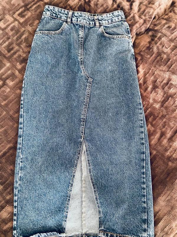 Юбка миди, темно синего цвета, застежка сзади, идеальное состояние, на размер 42-44, джинсы немного тянется, хорошее качество