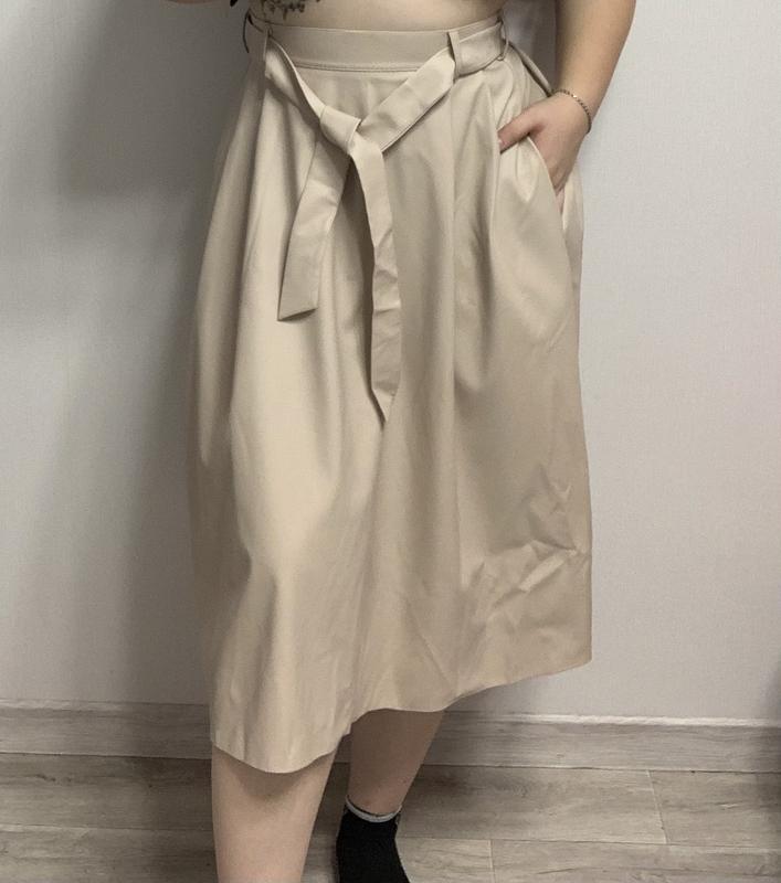 Бежевая юбка без дефектов 🔥 Материал: эко-кожа, легко гладится с внутренней стороны. Размер 46, также сядет на 48 ( мой 48-50 размер) 🔹Карманы + пояс 🇺🇦 Украинский производитель Высота: 73 см