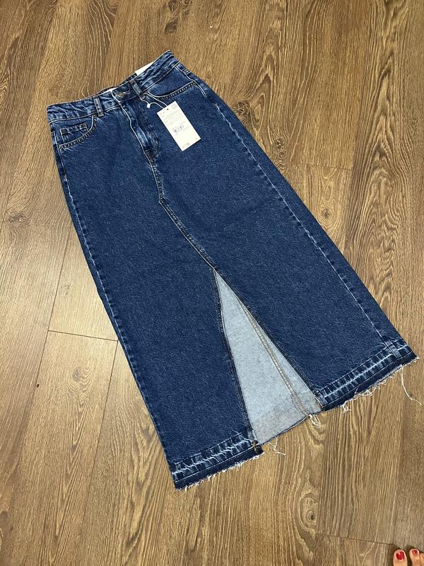 Джинсовая юбка миди с распоркой джинсовая юбка с разрезом новая