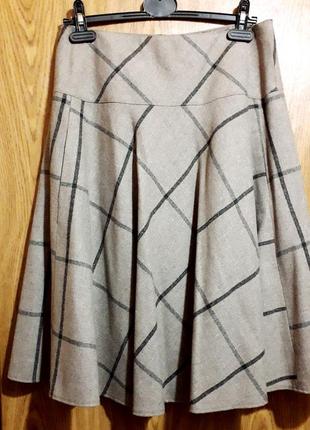 шикарная теплая юбка в состав ткани входит 25%шерсти,сама по себе ткань тонкая,сзади на молнии,имеются боковые карманы,на подкладке очень красивый цвет беж или кофе с молоком,размер 40,по замерам пот 41-42,крой солнце клеш,поэтому по бедрам подойдет на несколько размеров,длина 67,юбка смотрится просто супер!!!! красиво,комфортно,эффектно!!! оплата на карту приват или наложеный платеж по предоплате на доставку