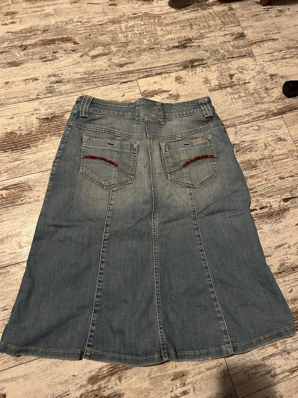 Класна джинсова спідниця міді