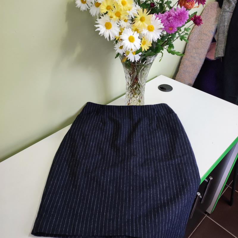 Пропоную вашій увазі теплу спідничку у вертикальну полоску. з кишеньками Розмір s/m Стан ідеальний Підкладка присутня Тканина 55% шерсть, 38% поліестер, 7% інші волокна Колір синій в білу полоску Заміри: ПОТ 36 см ПОБ 46 см Довжина 54 см
