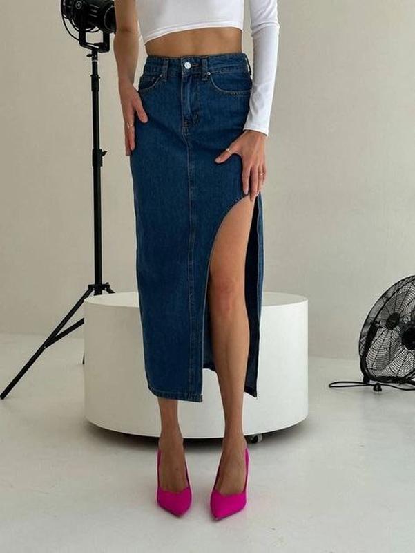 Джинсовая юбка с разрезом, мод ма-233, синий, размер м