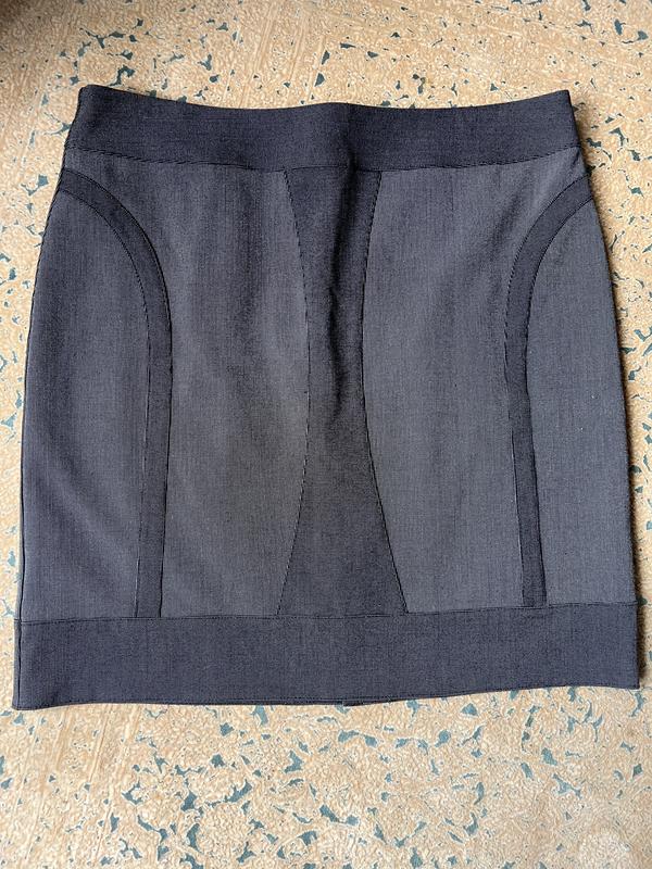 Юбка серого цвета со шлицей и молнией сзади без броков в идеальном состоянии. Размер XL-ХХL. Замеры: пот-47 см, пост-55,5 см, длина -54 см.
