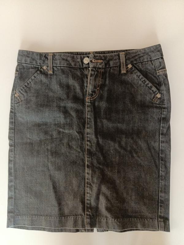 Продам прямую джинсовую юбку, серого цвета, с боковыми карманами. ПОТ 40 см, ПОС 46 см, длина 48 см.