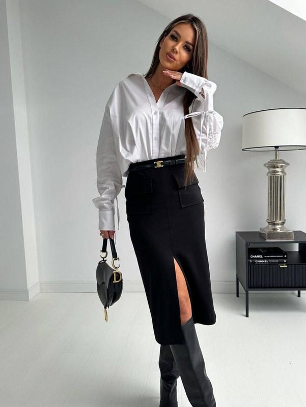 Юбка Модель: 0549 gar Цена 690 грн Цвет: графит и черный. Размер: 42-44,46-48,50-52 Ткань: замша на дайвинге. Ткань имеет эластичную основу (тянется) благодаря чему красиво повторяет фигуру. Карманы рабочие, пояс на резинке. 0549 42-44 Об т - 66 Об б - 88 Длина - 76 46-48 Об т - 72 Об б - 94 Длина -77