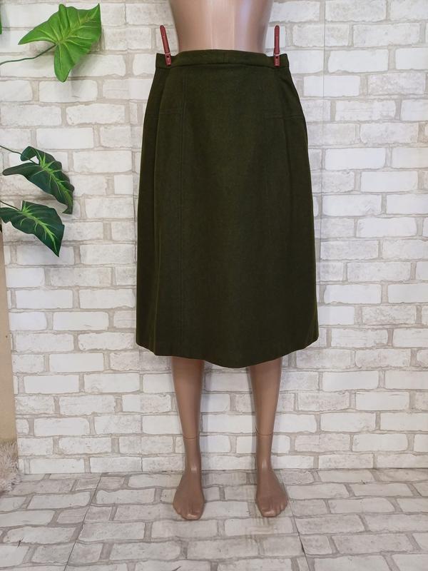 Мега теплая юбка миди трапеция со 100 % шерсти в темном цвете хаки, размер с-м