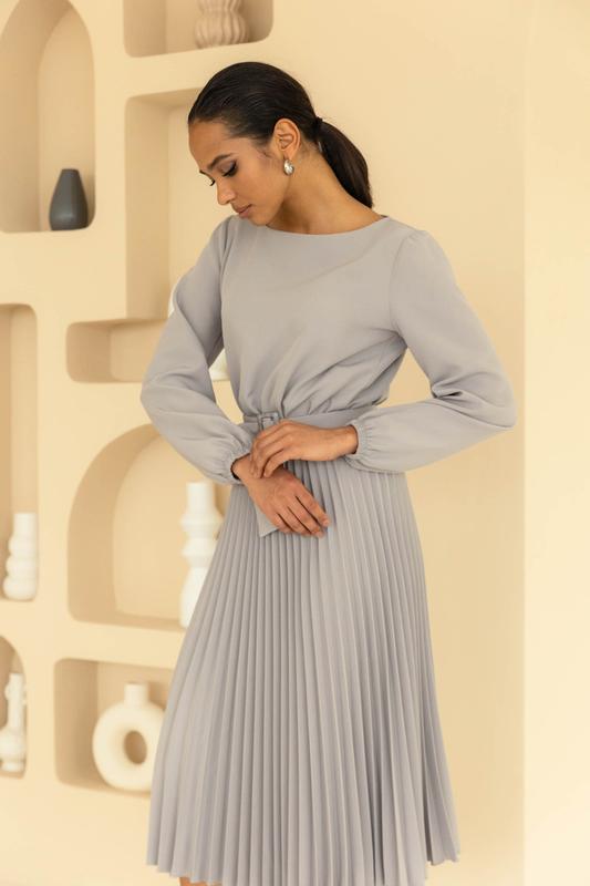 Материал - костюмка Цвет - серый Фурнитура - пряжка, резинка на поясе Фасон - прямой, свободный Сезон - демисезон, весна, осень Декоративные элементы - плиссированная юбка, пояс с пряжкой. Конструктивные элементы - разрезная талия, резинка на рукавах Комплектация - платье, пояс Уход за одеждой ручная стирка до 30° Длина изделия S-M=115 см L-XL=113 см XXL-3XL=111 см Длина рукава S-M=62 см L-XL=63 см XXL-3XL=65 см Длина брюк S-M=72 см L-XL=770 см XXL-3XL=68 см