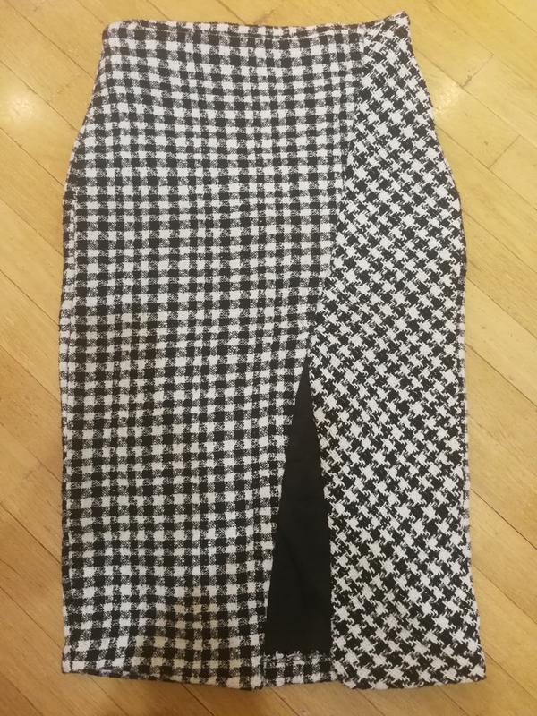 Очень красивая теплая юбка-миди в актуальную черно-белую клетку. Замок сбоку. Юбка на подкладке. Спереди комбинированная клетка + гусиная лапка. Модный разрез по косой. Длина 74 см, ширина по талии (полуобхват) 38 см