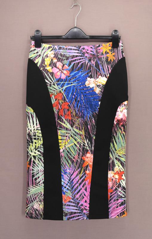 Новая брендовая юбка "Definitions" с растительным принтом. Размер uk10. Застёгивается сзади на потайную молнию. Материал - средней плотности "дайвинг". Размер uk10. Замеры в нерастянутом виде (ткань хорошо тянется): -ПО пояса - 36 см (тянется до 42 см); -ПОБ - 43 см; -длина - 70 см. Без дефектов. Новая (сток с бирками)! *Рост манекена, на котором сделано фото - 185см.