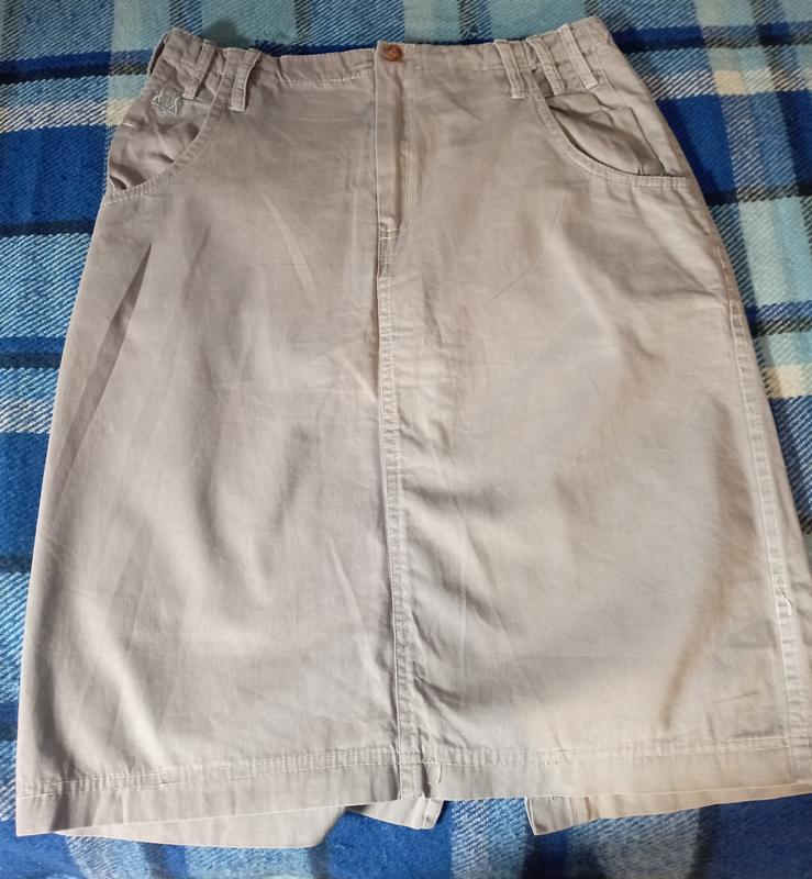 Юбка-карандаш. Цвет немножко темнее и насыщеннее чем на фото, между хаки и серым. Тканина котон тонка. Половина окружности талии 38см, половина окружности бедер 50.5 см, длина 56см. Молния спереди, работает идеально. Карманы полноценные и спереди и сзади. Стан идеален, без потертостей и повреждений, одевалась один раз. Пересылаю новая или Укрпочта.