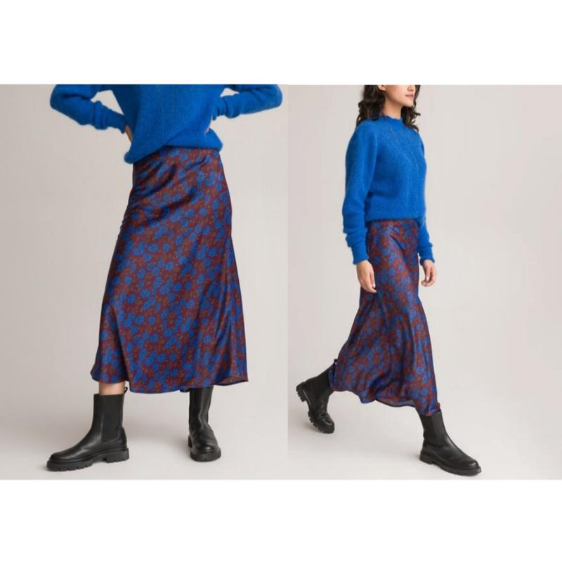 Сатиновая миди юбка в цветочный принт шелковая юбка в бельевом стиле la redoute женская юб...