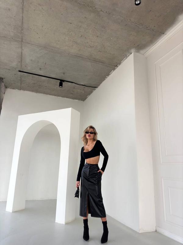 Женская трендовая юбка Размерный ряд S,M,L,XL Тканина кожа на флісі Застегивается на молнию и пуговицу Очень стильная и качественная модель